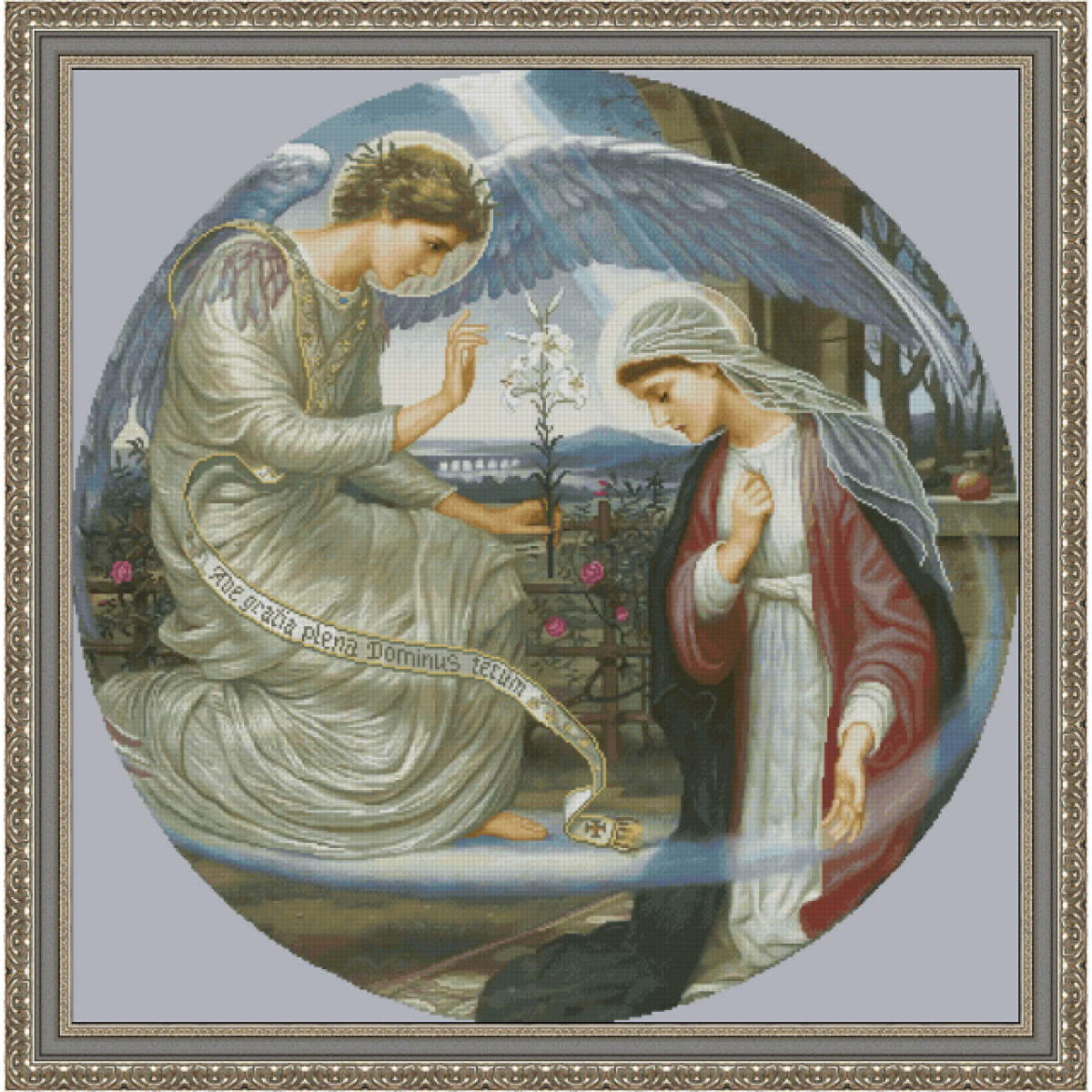 Цей набір — для тих, хто вишиває не просто інтер'єрну картину, а прагне створити величне полотно, сповнене духовності та високого мистецтва. «Благовіщення» — це деталізована репродукція класичного сюжету, що зображує мить появи Архангела Гавриїла перед Дівою Марією. Робота виконана у вишуканій круглій формі, яка додає композиції гармонійності та завершеності.