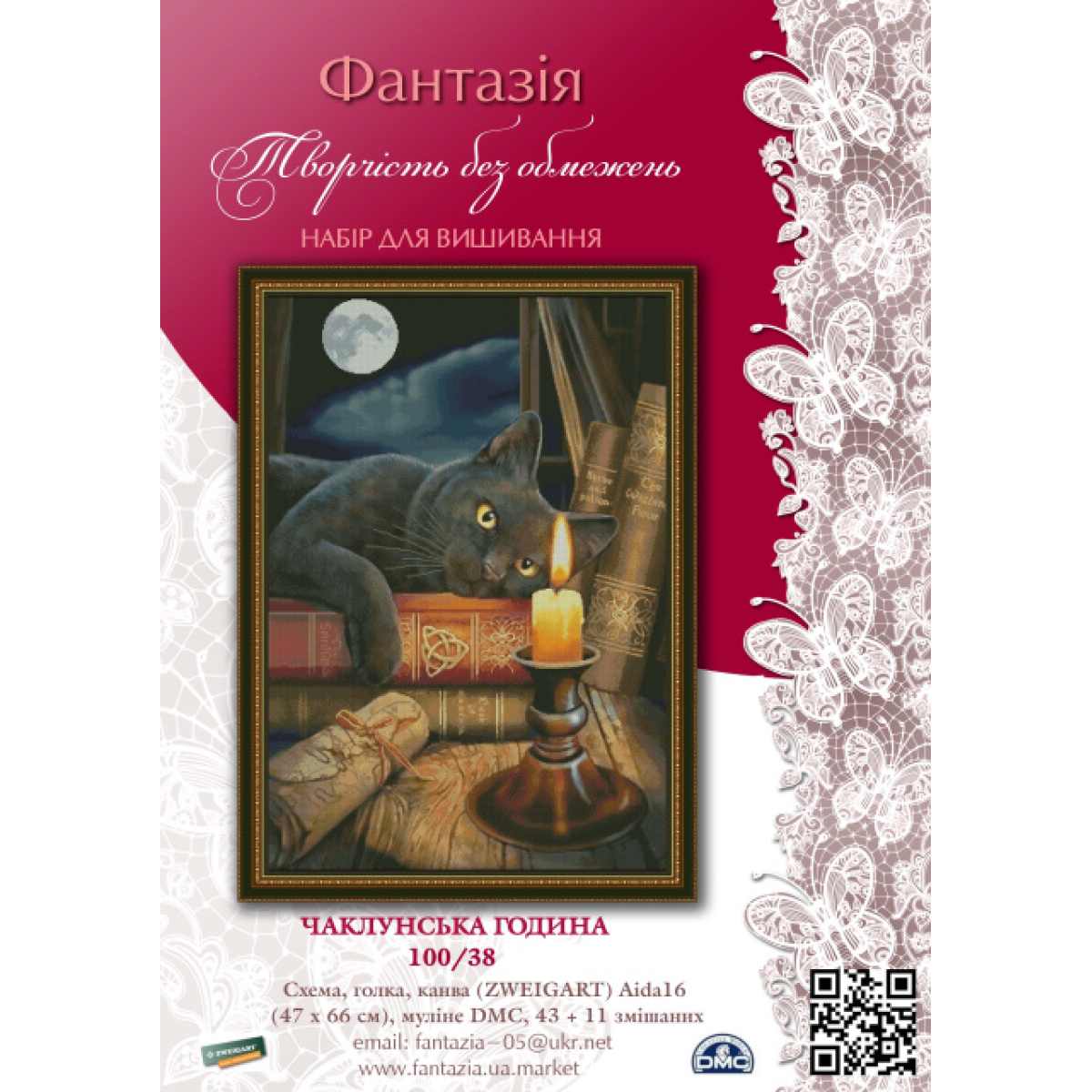 Цей набір — для тих, хто вишиває не просто інтер'єрну картину, а прагне передати на полотні мить справжньої нічної магії. «Чаклунська година» — це надзвичайно затишний та загадковий сюжет, де граційний чорний кіт відпочиває на стосі старовинних книг при світлі мерехтливої свічки. Глибокий погляд тварини, сувої з таємними знаннями та повний місяць у вікні створюють атмосферу спокою та містичного очікування.