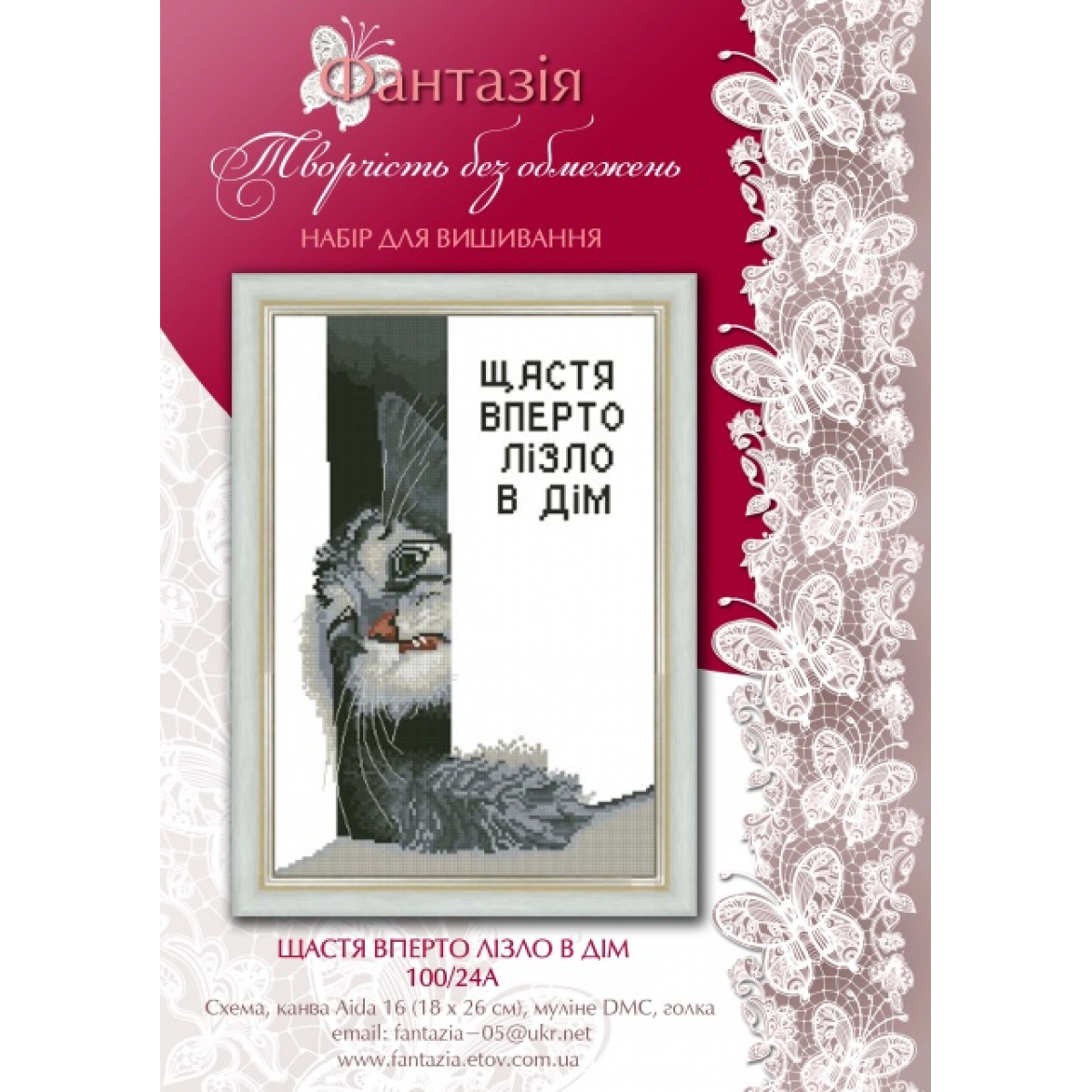 Набір для вишивання хрестиком ТМ Фантазія «Щастя вперто лізло в дім» (арт. 100/24А) — це іронічний та надзвичайно милий сюжет, який миттєво підіймає настрій. Картина зображує кумедного кота, який намагається пролізти у двері, супроводжуючи це символічним написом. Ця робота стане чудовим оберегом для вашої оселі або оригінальним подарунком для людей з почуттям гумору та любов'ю до пухнастих бешкетників.